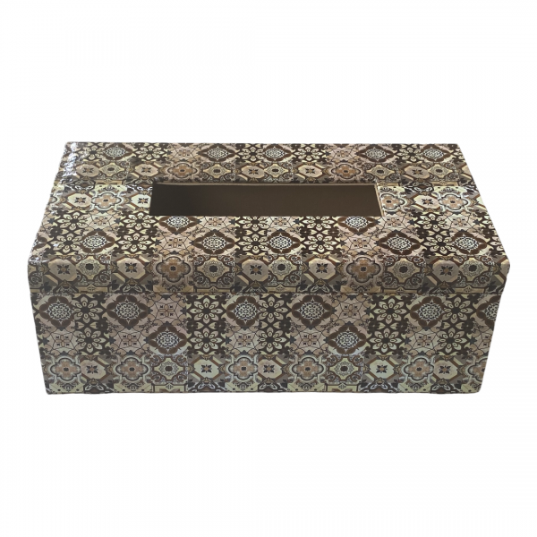 Textured Brown Tissue Box Holder With Golden Lining