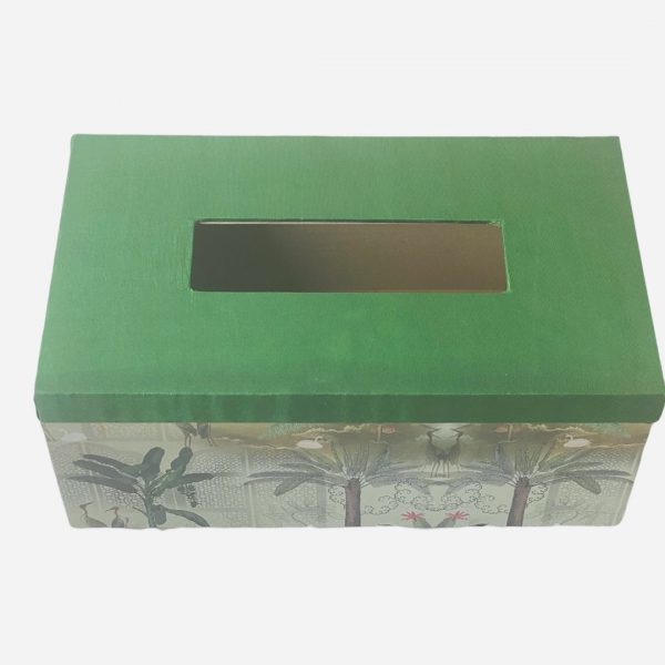 Palm Trees Printed Tissue Box Holder with Plain Plain Green Lid
