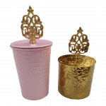 Pink and Golden hammered Metal Jar for Dry fruits Chocolates tc