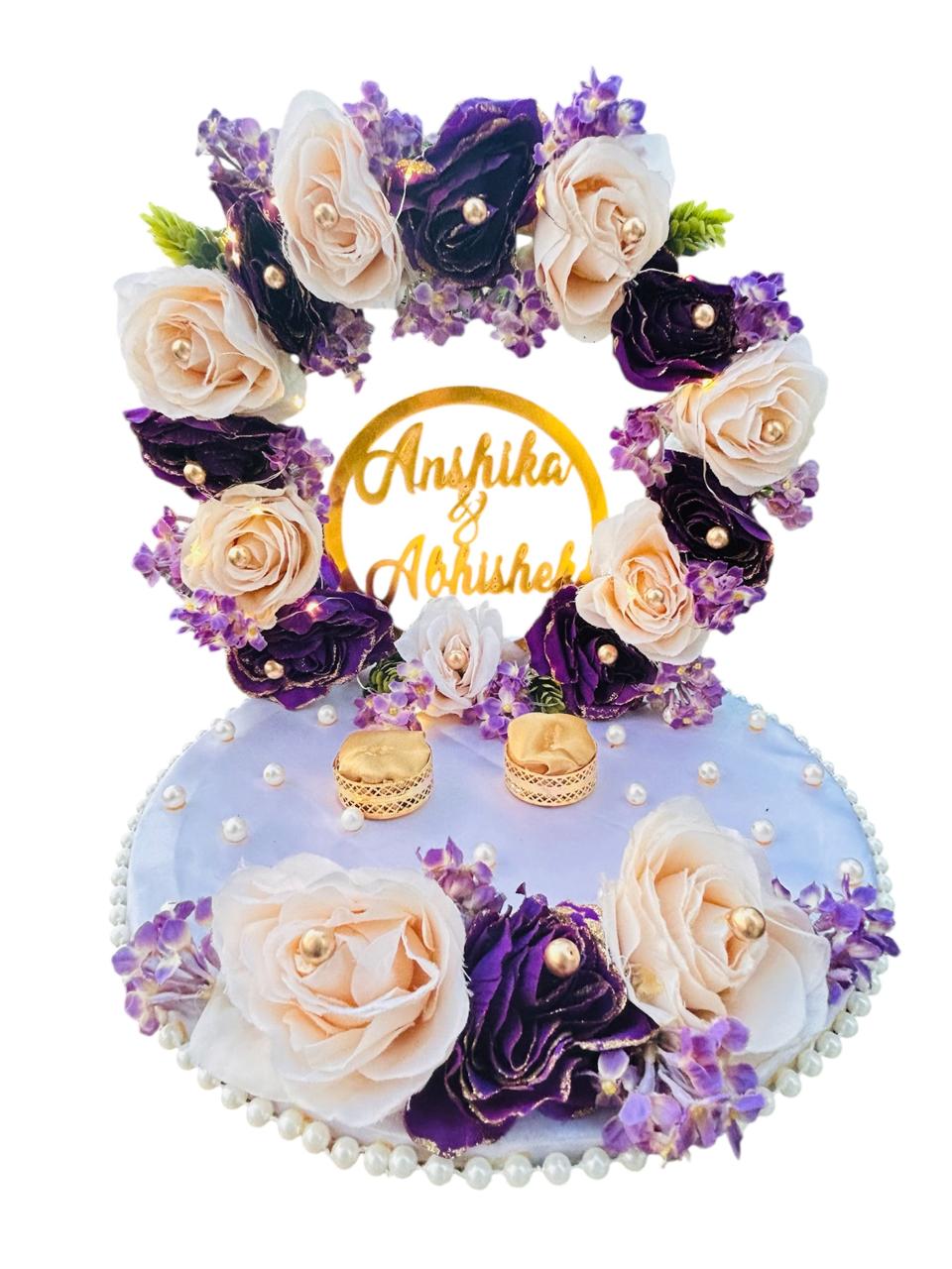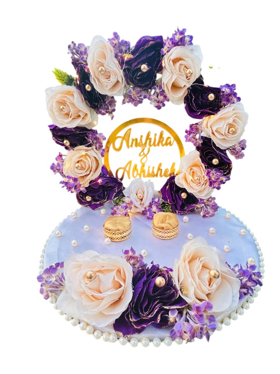 This floral ring platter is thoughtfully designed with delicate flowers, pearl highlights, and a customized name centerpiece to make your engagement moment truly magical.